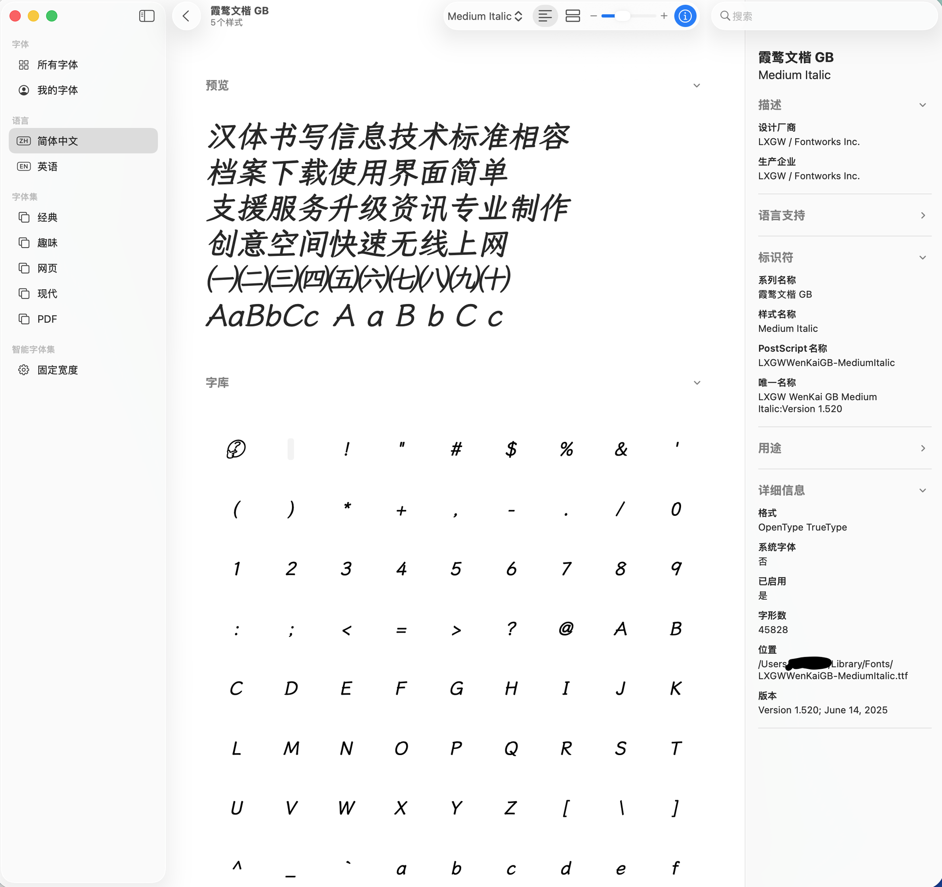 [2025年6月:更新LXGWWenKaiGB到1.520]