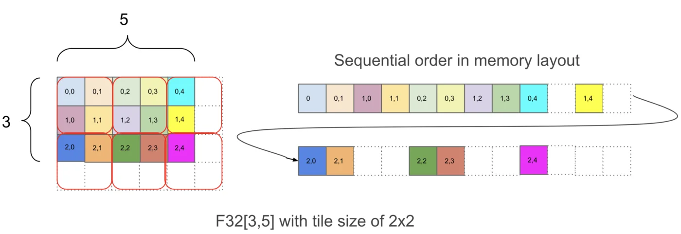 当N → ∞时。所以点积的算术强度为\frac{1}{2},或者换句话说,点积每加载一个字节执行0.5次浮点运算。这意味着我们的算术强度低于硬件的算术强度,我们将受通信限制。