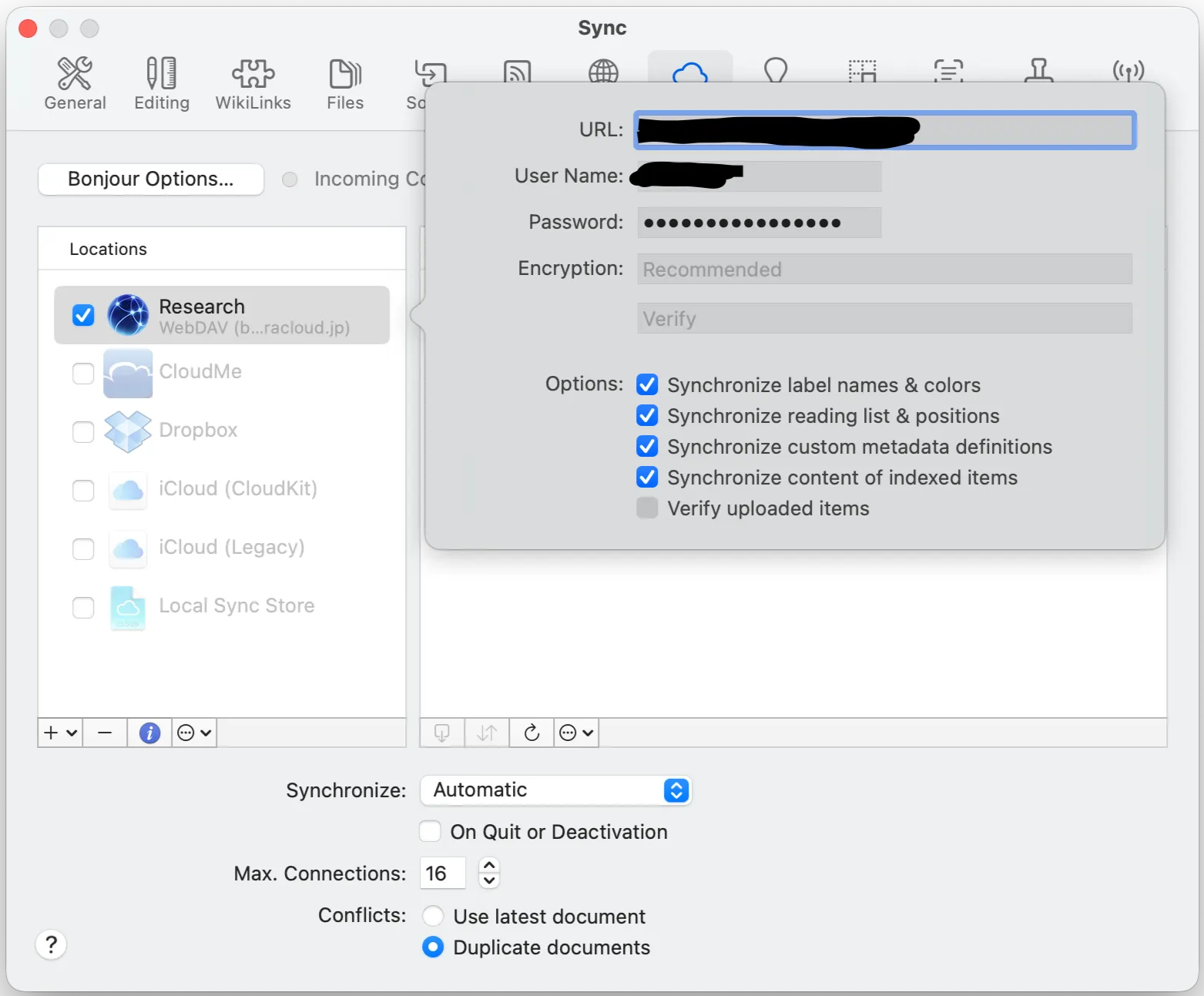 DEVONthink 4支持WebDAV同步,配置使用InfiniCLOUD同步资料: