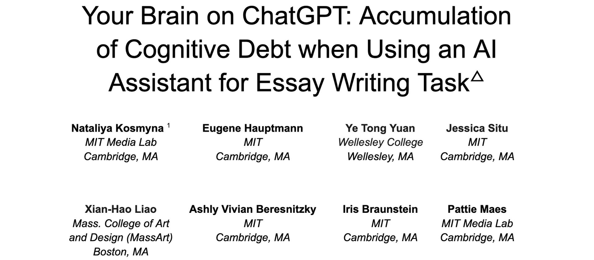最近看到一个很有意思的研究 Your Brain on ChatGPT: Accumulation of Cognitive Debt when Using an AI Assistant for Essay Writing Task: